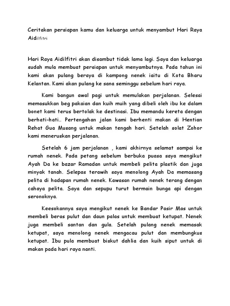 Karangan Hari Raya Aidilfitri In English : Contoh Karangan Smart Mind Home Centre Tangkak Facebook. Panjang karangan anda hendaklah antara 200 hingga 250 patah perkataan. Dalam meniti arus kemodenan yang berteraskan sains dan teknologi maklumat, faktor kesihatan masyarakat pada hari ini berada pada tahap yang membimbangkan pihak berkuasa …
